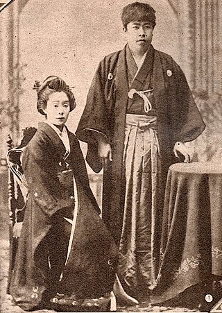 日本の結婚式でみられる新郎の和装の紋付羽織袴は、上が黒羽二重の五つ紋付の着物と羽織、下が仙台平の袴、足は白足袋に草履姿である。